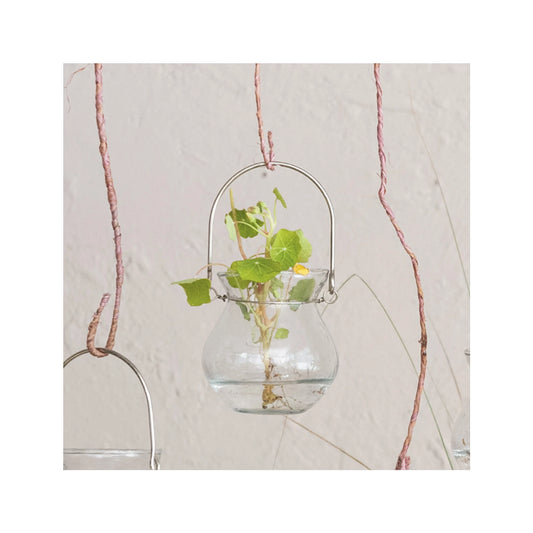 Hammered Recycled Glass Tealight Holder w/ Metal Handle